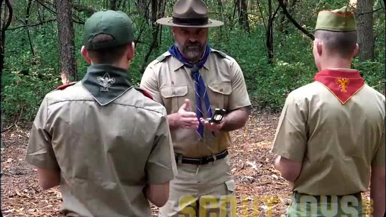 Muscle bear bangs twink sons bareback in forest scout camp
